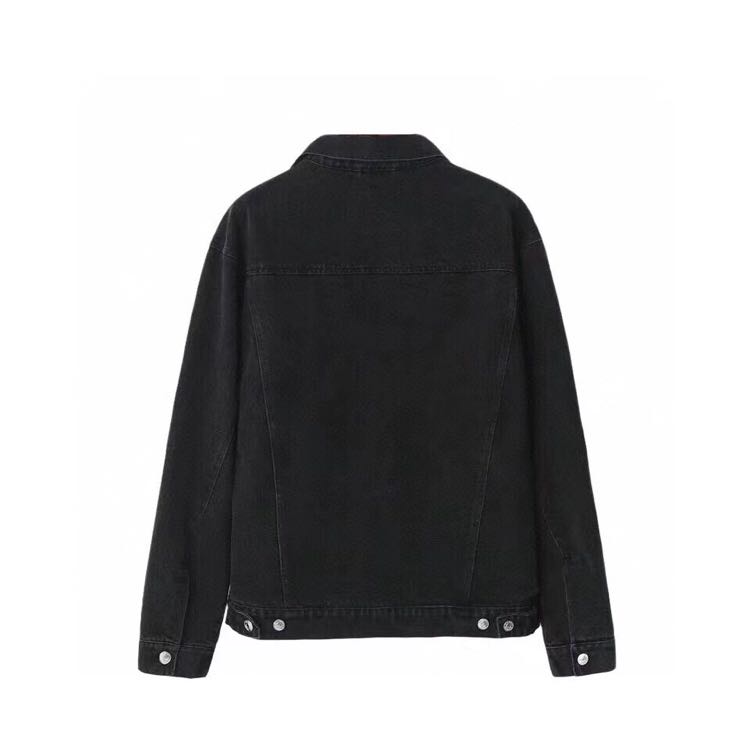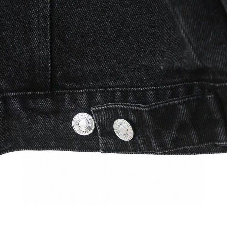Balenciaga 22 Early spring chest embroidered with red letters wash black logo men's and women's jackets denim