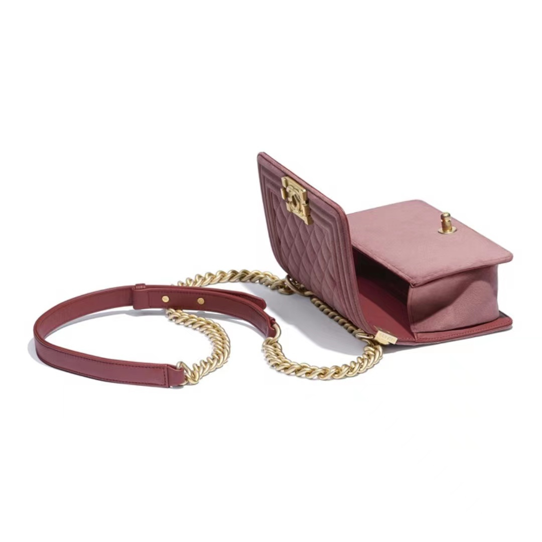 Chanel pink gold buckle velvet Le Boy classic one-shoulder oblique chain bag trumpet