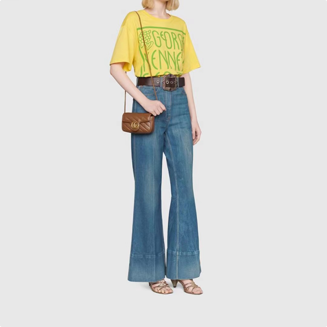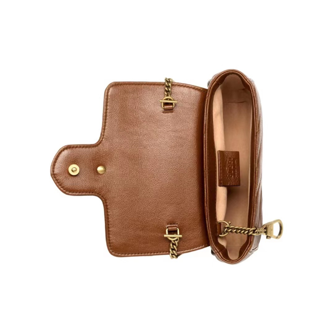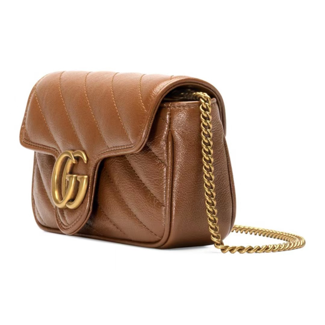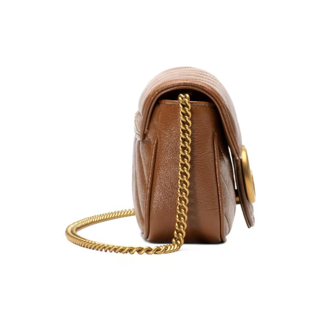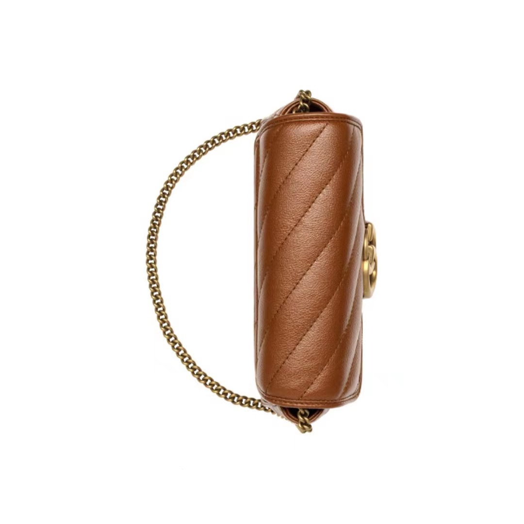 Gucci GG Marmont Mamun gold mark Logo makes old quilted leather chain one-shoulder shoulder satchel super mini women's style brown