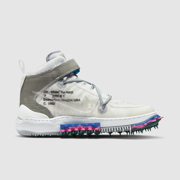 Virgil Abloh's legacy lives on with the Nike Air Force 1 Mid SP men's sneaker. Celebrating the 40th anniversary of the AF1, he reimagines the legendary shoe from an avant-garde perspective. The lightweight, breathable woven upper combines with a woodgrain pattern for a utilitarian element, while the studded outsole is a direct link to the ISPA philosophy. As always, Virgil left room for creativity, this design features traditional laces and a second set of laces interspersed with Flywire. The result: a modern and experimental reflection of the shoe.