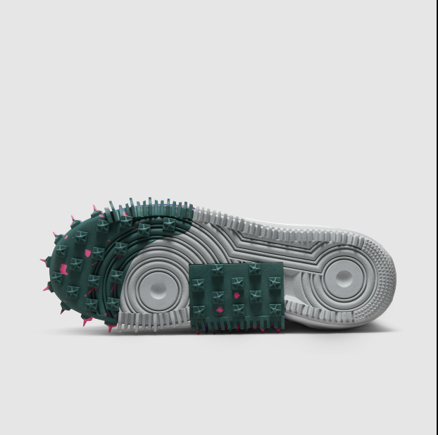 The outsole is innovated with exaggerated nail-shaped pits, adding more features.