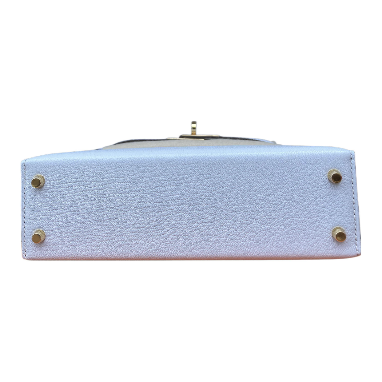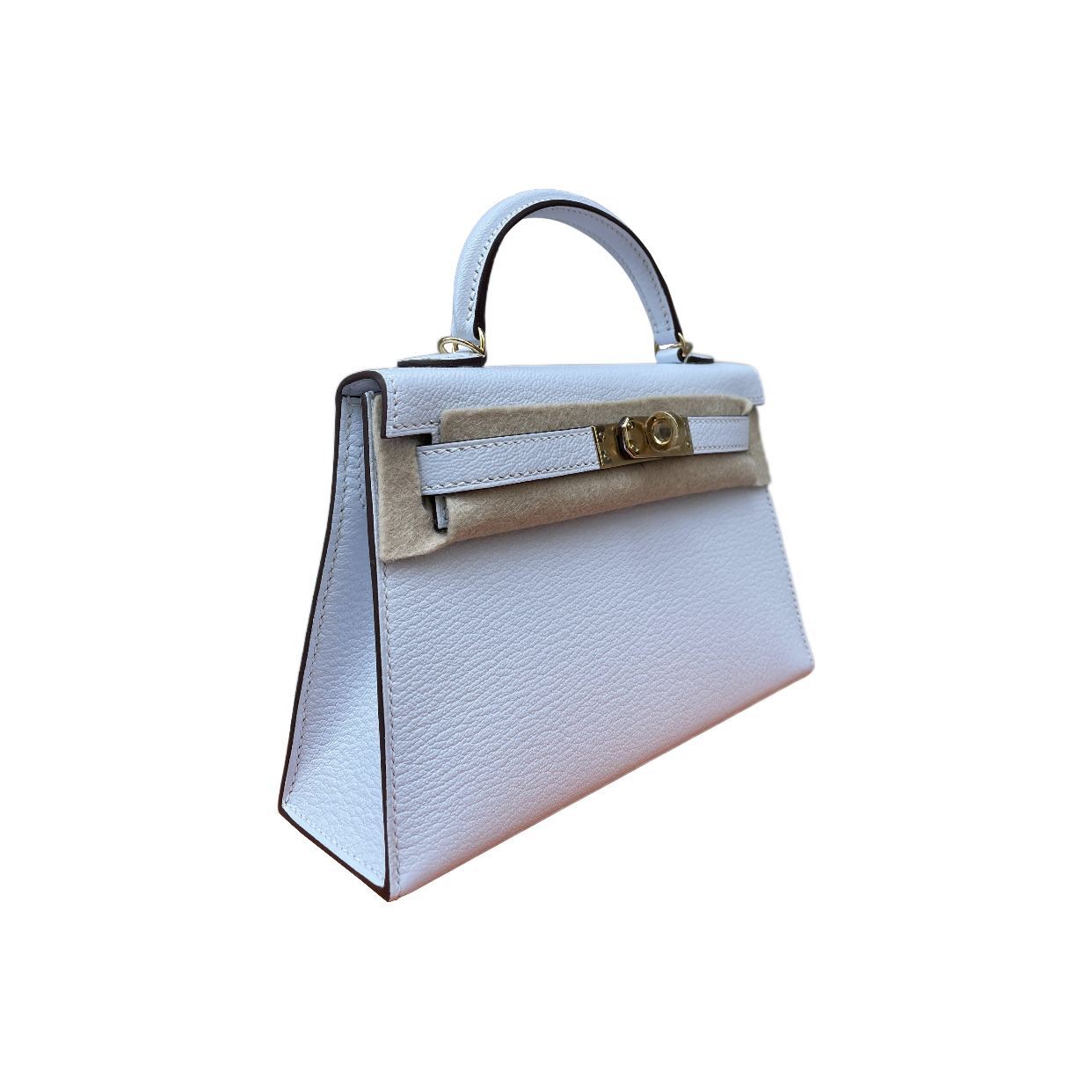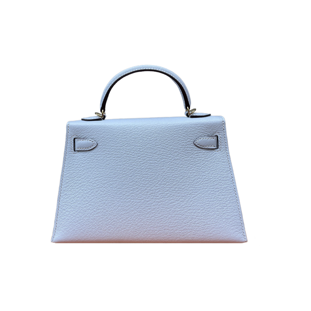 HERMES Mini Kelly II Sellier Kelly bag Mysore goatskin gold buckle one-shoulder handbag mini women's model TO Bleu Brume fog blue
