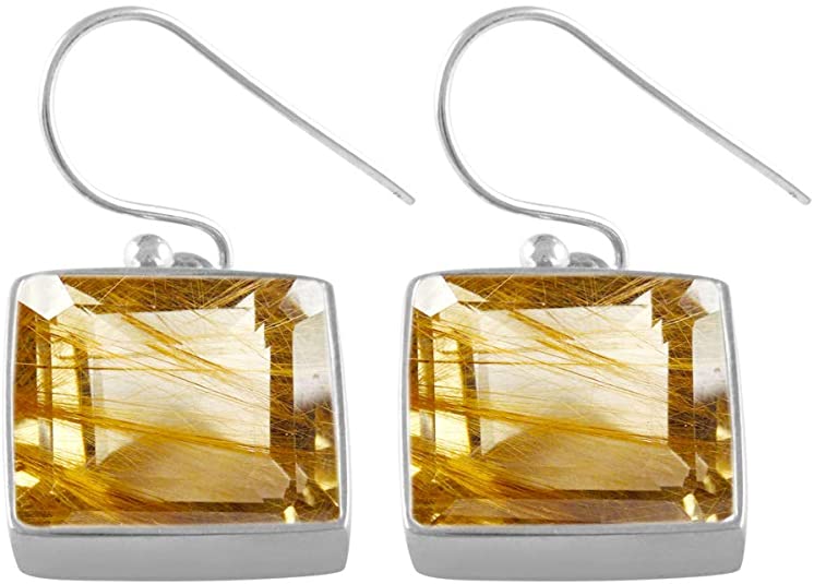 SURYAGEMS Natural Baguette Earrings 925 Sterling Silver 18k Gold Plated Jewelry for Women