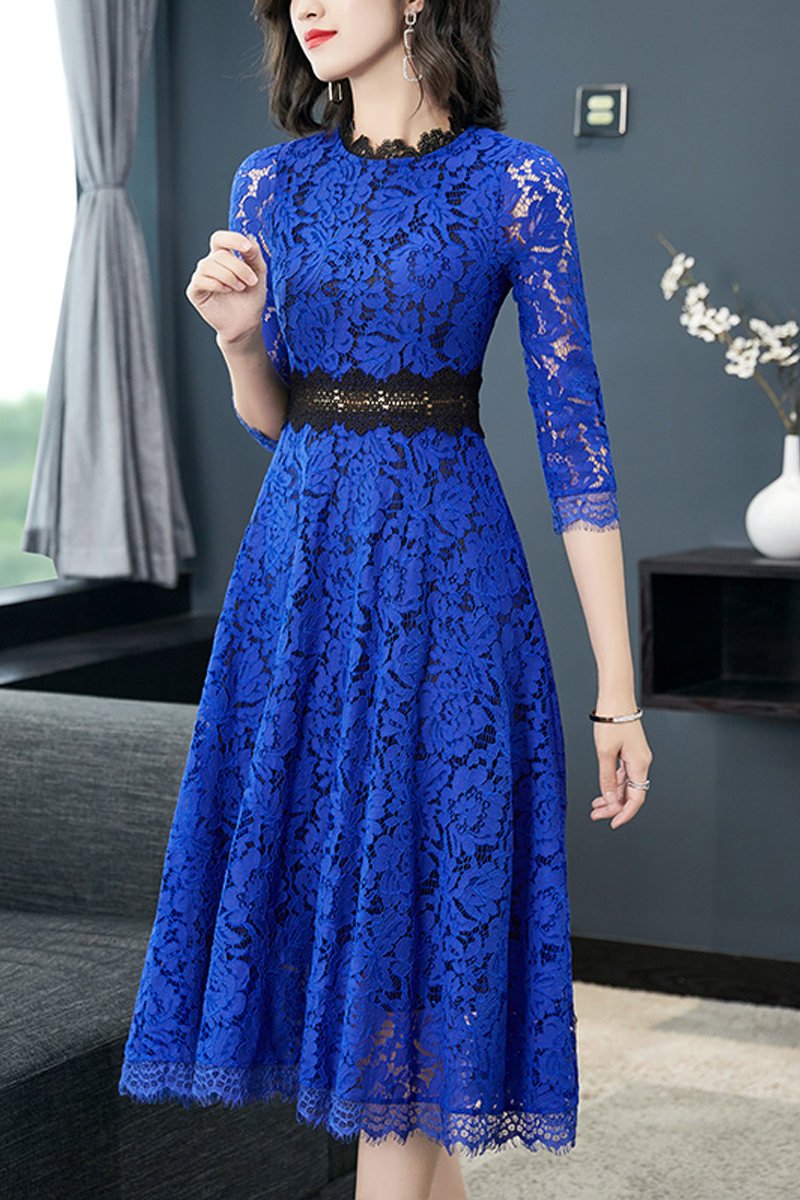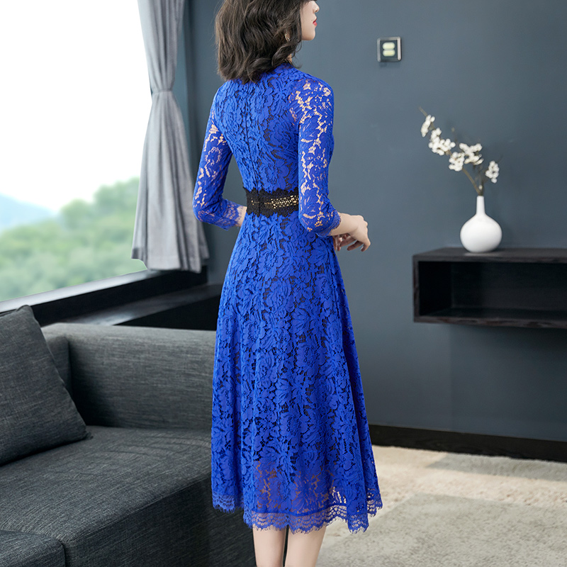 Size: S M L XL 2XL 3XL 4XL 5XL Fabric: Lace pattern: Floral Style: Commuter: Korean Collar: Stand collar waist: High waist Color classification: Khaki blue sleeve: Other combination form: Single Item No. : 6.9-3 Composition content: 51%(inclusive)-70%(inclusive) Skirt Type: A-line Skirt Year Season: Fall 2020 Sleeve Length: Quarter sleeve Length: MIDI Length Style: Other /other Profile: A-line
