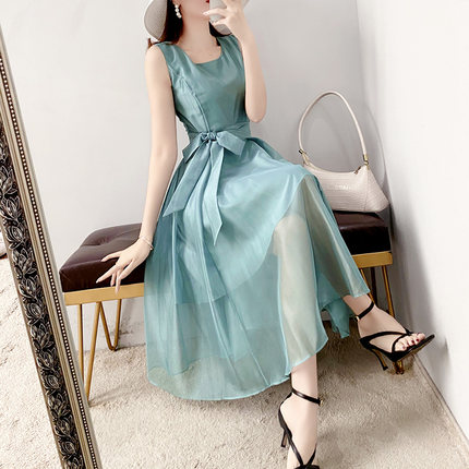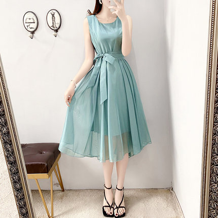 Material: Other size: S M L XL Fabric: Other pattern: solid color Style: Commuter: Korean collar type: square collar waist type: middle waist garment front: zipper color classification: Green sleeve type: conventional combination form: Item No. : AD20XT2890 Component Content: Over 95% Skirt Type: A-line skirt Year Season: Summer 2021 Sleeve length: Sleeveless skirt Length: MIDI Skirt Popular elements/process: bow tie stitching gauze zipper style: Other /other Sales channel type: pure e-commerce (online only) Material composition: other 100%