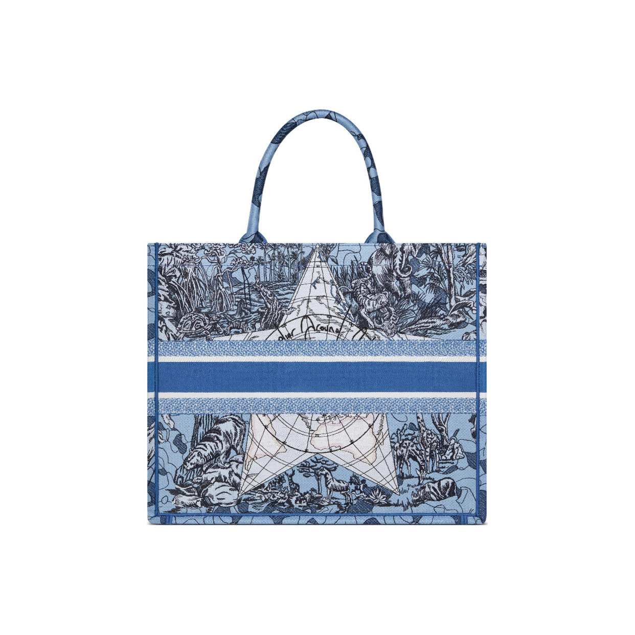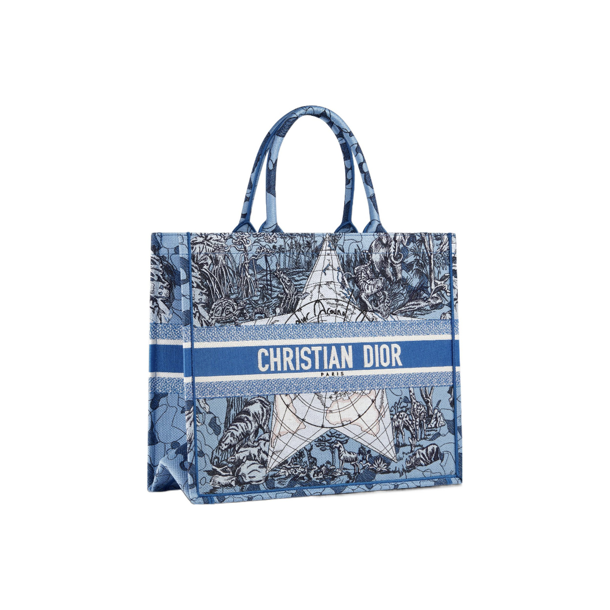 DIOR Book Tote Todd bag series Around TheWorld pattern embroidery printing large capacity handbag single shoulder bag large women's Klein blue
