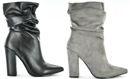 LADIES FAUX LEATHER/SUEDE MID SLOUCHY ANKLE BOOTS SIZE UK 3 - 8