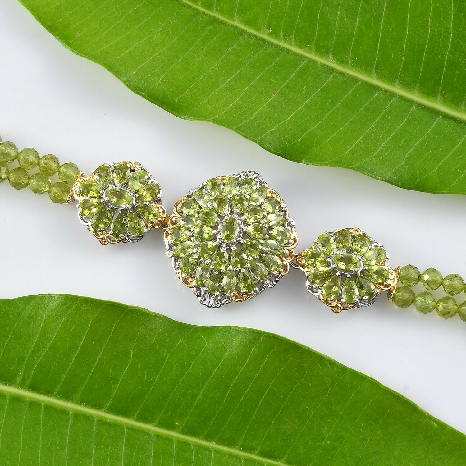 925 Silver Cocktail Bracelet Peridot Platinum Over Size 7.25" Ct 58.4