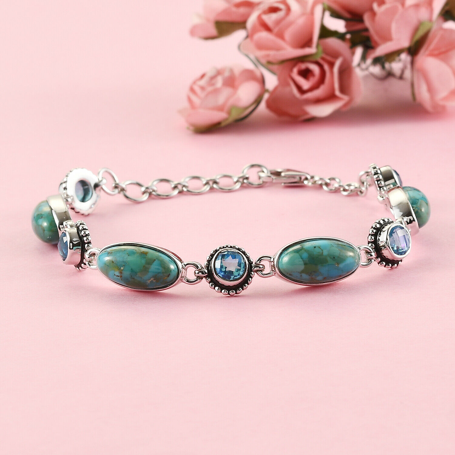 925 Sterling Silver Turquoise Bracelet Platinum Over Rainbow Jewelry Ct 17.1