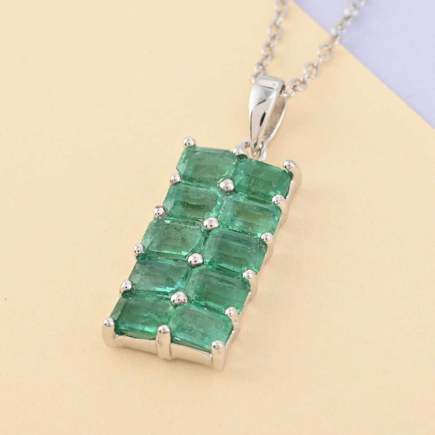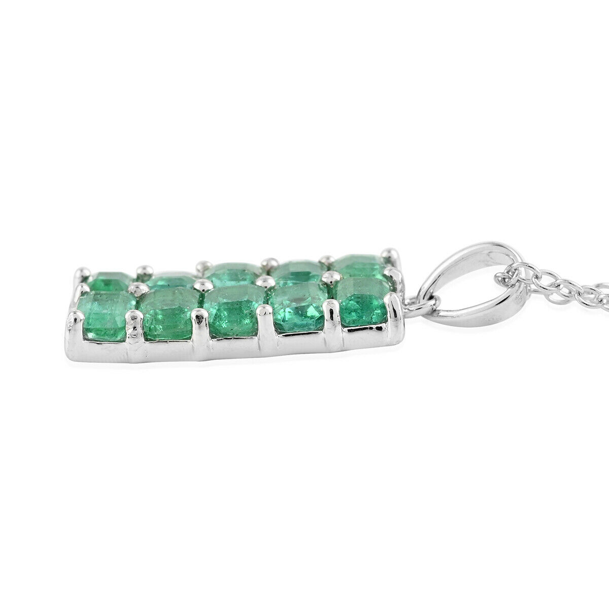 925 Silver AAA Emerald Pendant Necklace for Prom Size 18" Ct 2