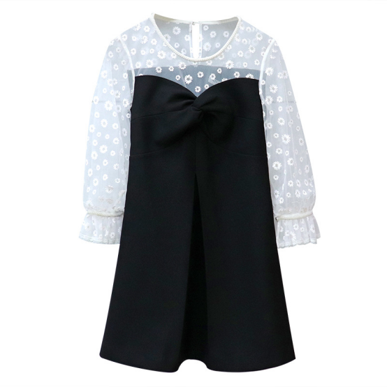 The new women's dress hand-made beaded round collar daisy embroidered flower splicing breast high waist dress.