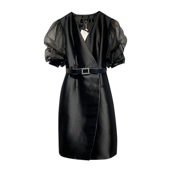 The new V-collar high-waisted manicure diamond bifurcated one-piece dress for women.