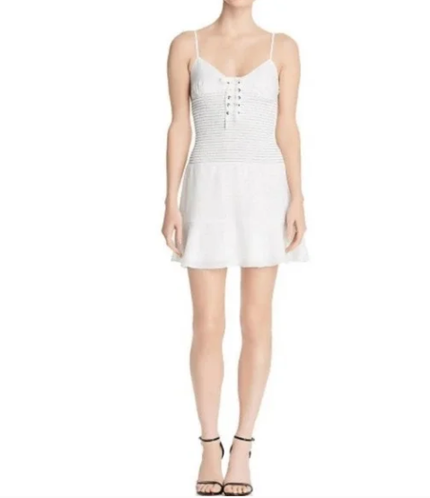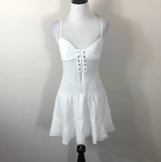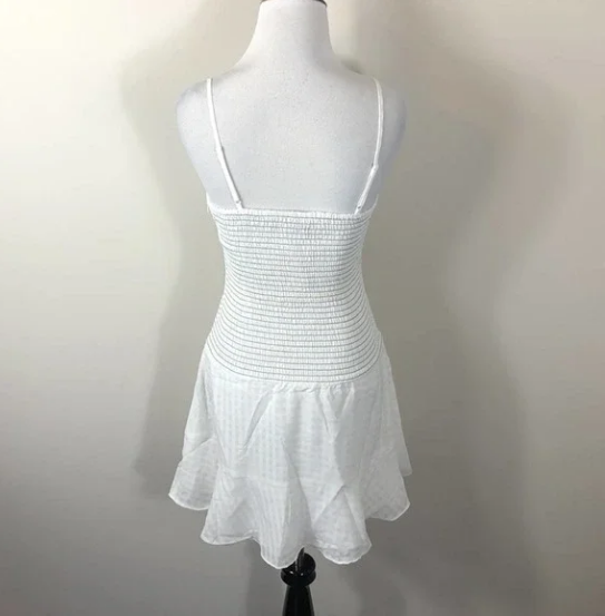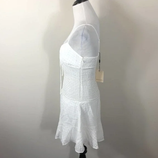 The East Order white chance tonal gingham smocked mini lace up dress. Hidden side zip, adjustable straps. Main 100% polyester. Lining 100% rayon. Approximate Measurements: ▪️Bust: 14” ▪️Waist: 11.5 (stretchy) ▪️Hips: 19.5” ▪️Length: 31.5” Tags: boutique, black, floral, below the knee dresses, long, mermaid, maternity, body con, beaded, turquoise, maxi, marciano The East Order chance tonal mini lace up gingham white smocked dress.