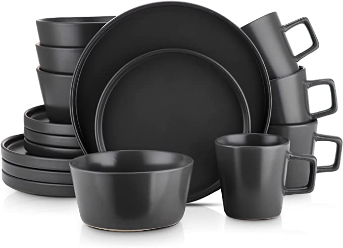 PERFECT FOR EVERY DAY – Our Cleo Ceramic Cutlery Set includes 4 large round 10.25" (~26cm) dinner plates, 4x 7.5" (~19cm) salad plates, 4x 8.5 oz (~23.6ml) rounds Shaped pasta bowl and 11.5 oz (about 21.5 ml) mug, perfect for dining with family and friends.