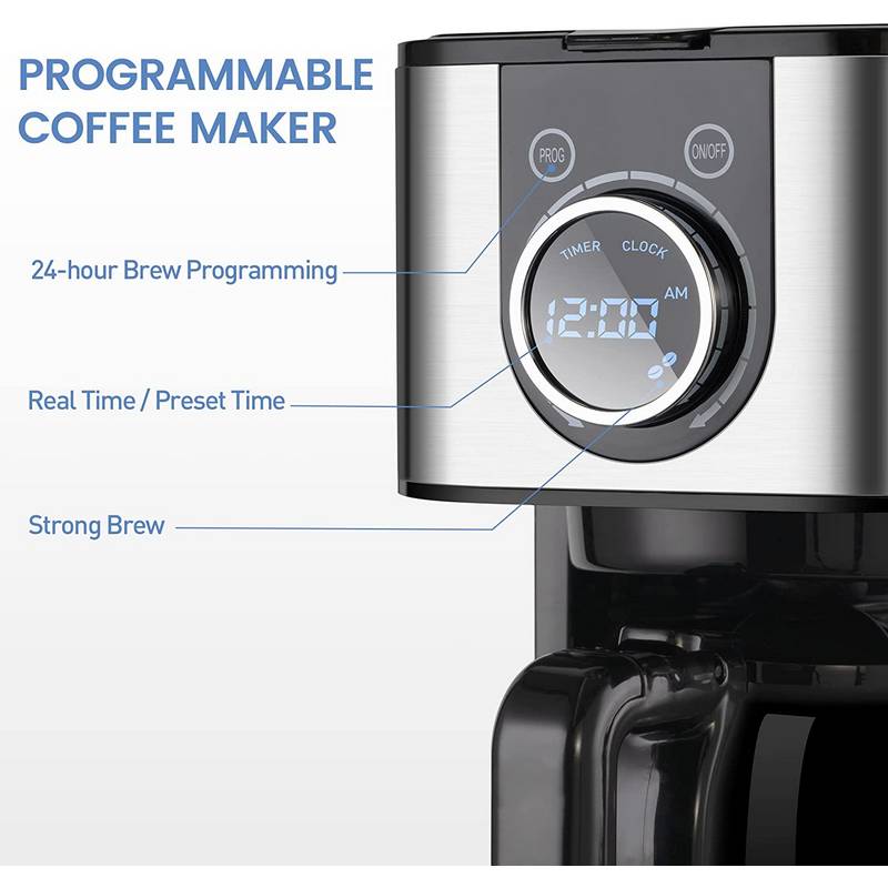 • 24-hour Brew Programming & Strong Brew Function: If filling the coffee maker and turning it on is too much to handle in the morning for you, this programmable coffee machine can automatically brew each morning, you just need to set everything up the night before; Brew strength control allows you to select regular or bold coffee flavor