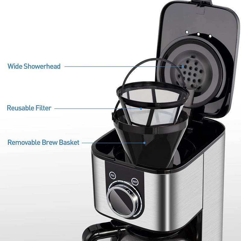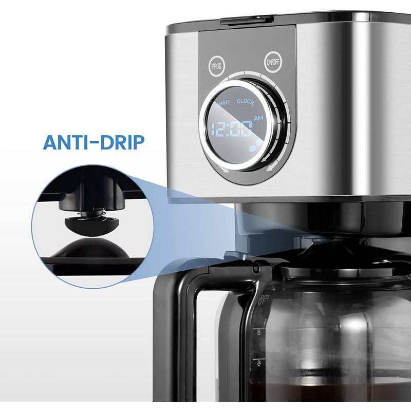 • LCD Screen & Knob Design Coffee Machine: This 10-cup coffee maker features a LCD screen, easily display the real time, preset times and selection of strong brewing mode; Knob design makes the operation much more easier, and it has longer service life than keys