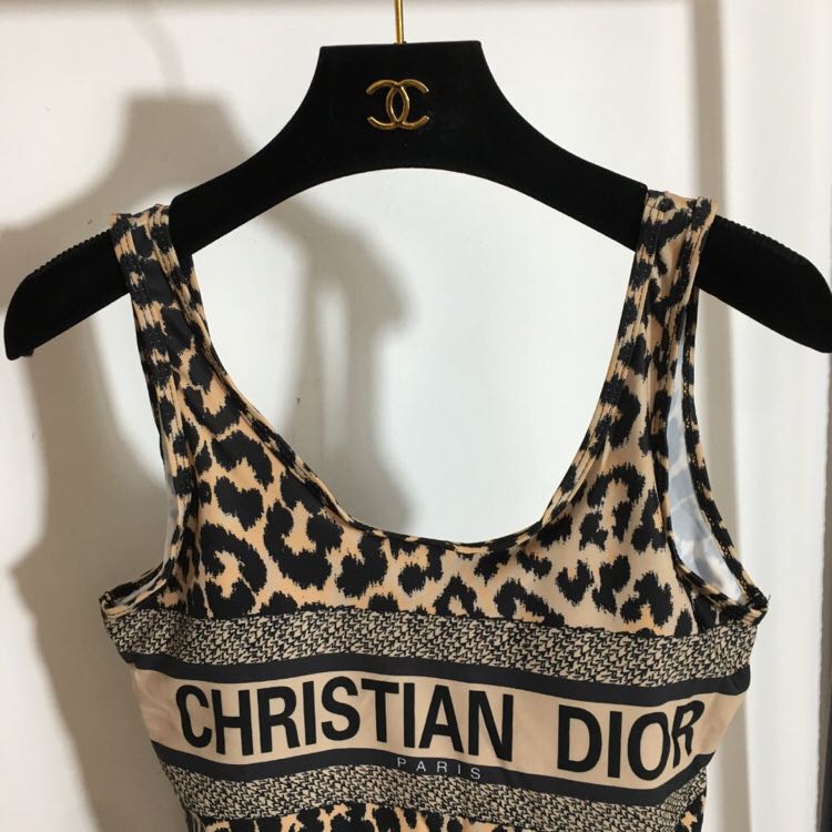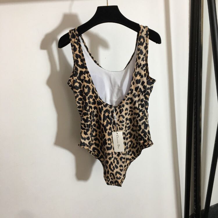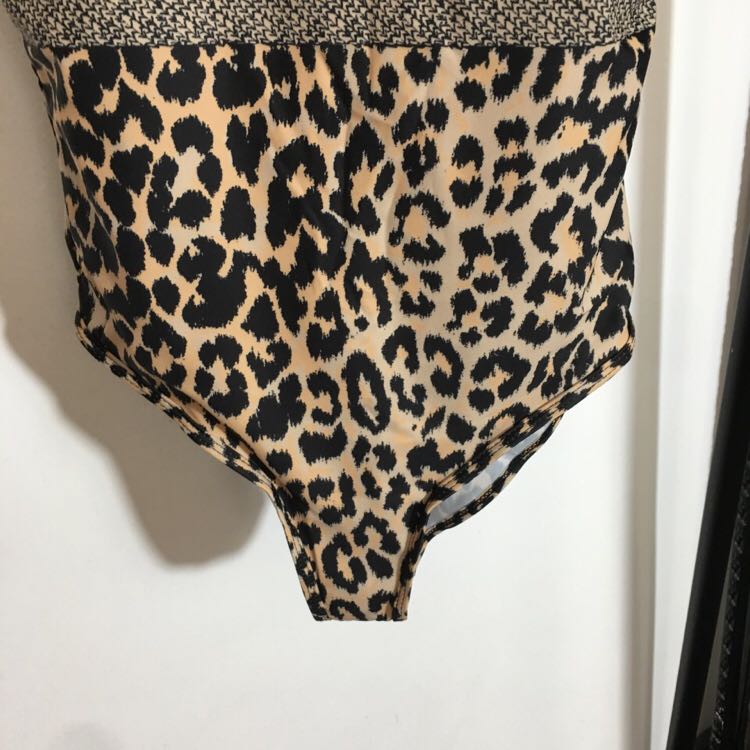 Leopard print monogrammed backless one-piece with padded chest