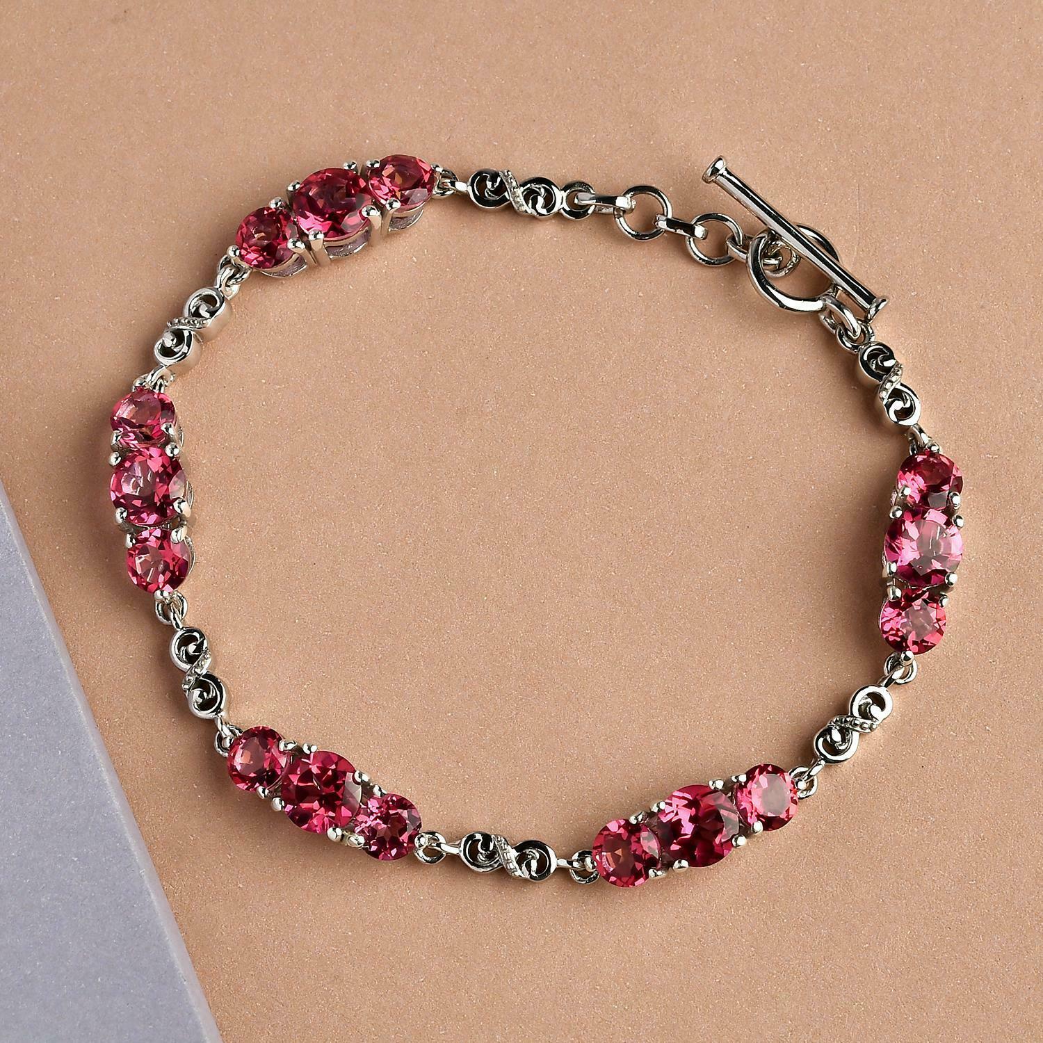 925 Sterling Silver Platinum Over Pink Topaz Link Bracelet Size 7.5" Ct 13.3