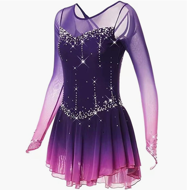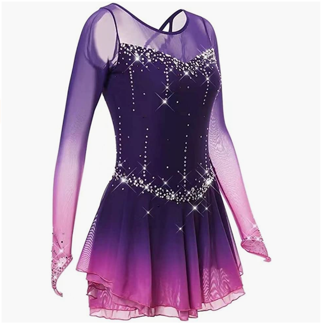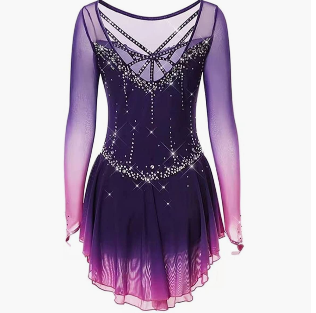 LIUHUO figure skating skirt gradient purple mesh skirt girl hook sleeve competition performance