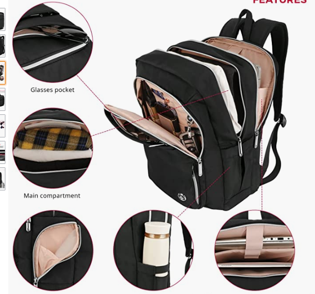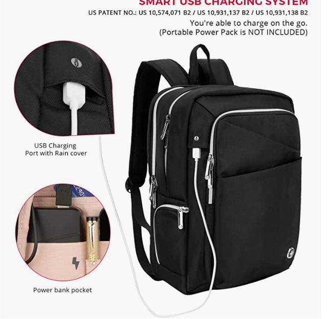Katy Rose Women's Laptop Bag Size: Length 11 x Width 5.25 x Height 16.25 inches. Large-capacity multi-compartment: A 15.6-inch laptop can be placed in a separate compartment. The spacious main compartment can accommodate A4 folders, magazines, tablets, clothes and other daily necessities, and the side pockets are simple and practical. [USB charging port] is equipped with a charging port, which can quickly charge electronic devices such as mobile phones. The charging port is located on the side of the backpack, and the device can be used when walking. [Except portable battery pack] No specific battery pack is required. RFID protection bag: RFID protection bag helps to protect your personal information (such as credit card, passport and driver's license) from theft by RFID scanner. Additional package system: Add a package system to facilitate your travel. Luggage belt allows you to fix your suitcase on your backpack, so you can pull it with one hand. Your trip will immediately become more relaxed and enjoyable.