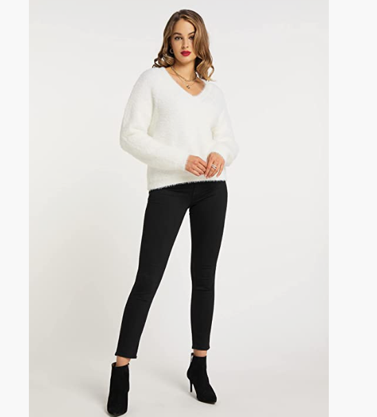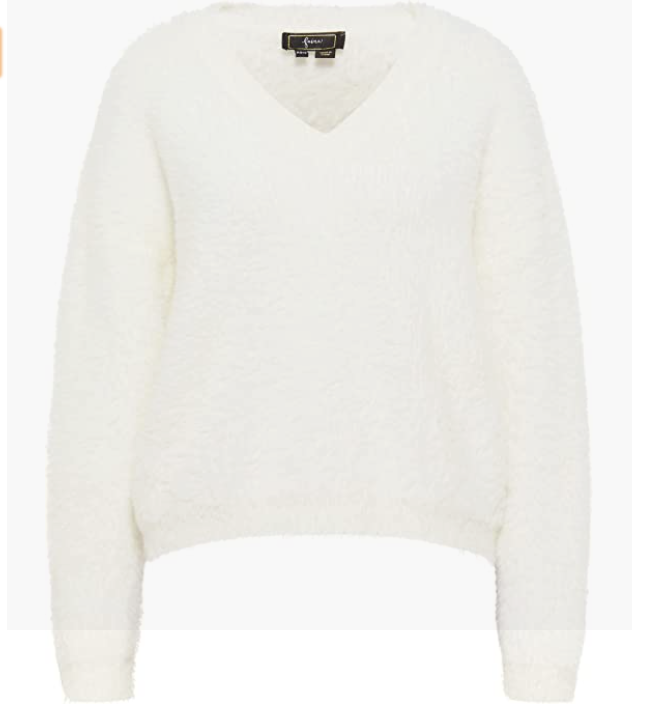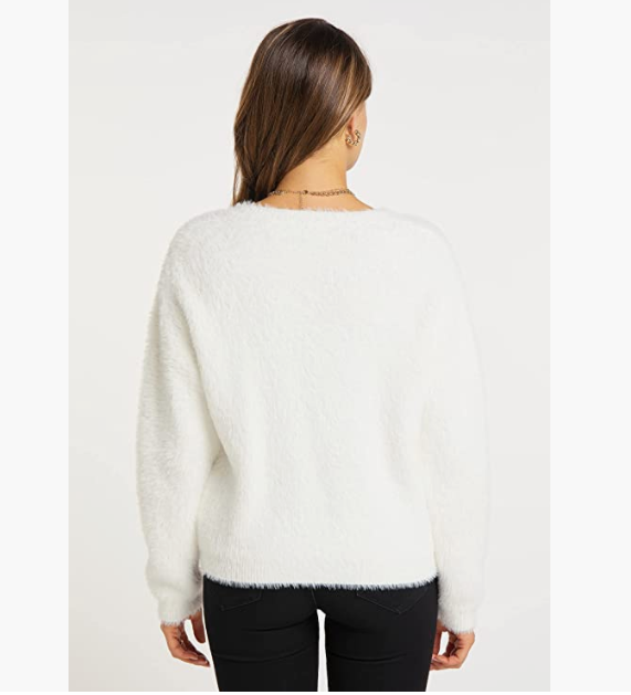 Soft pullover Made of silky shiny artificial hair. Small V-neck Thick thermal insulation material