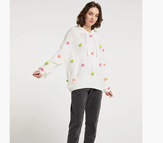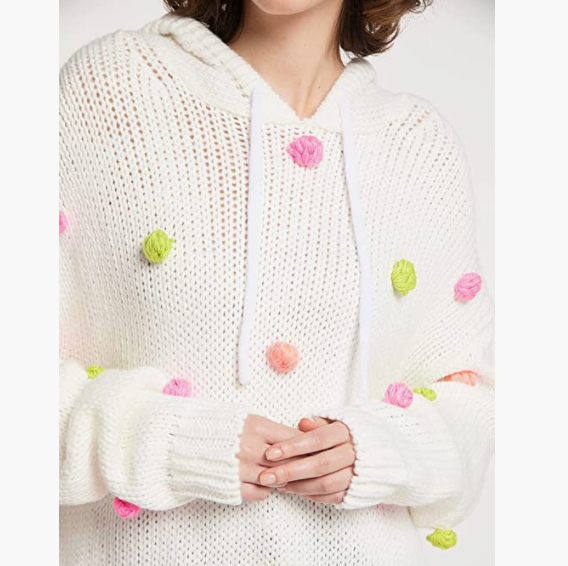 Oversized hand-knitted hoodie Full-body colored knitting balls Soft hood with drawstring Super long sleeve Wensong knit