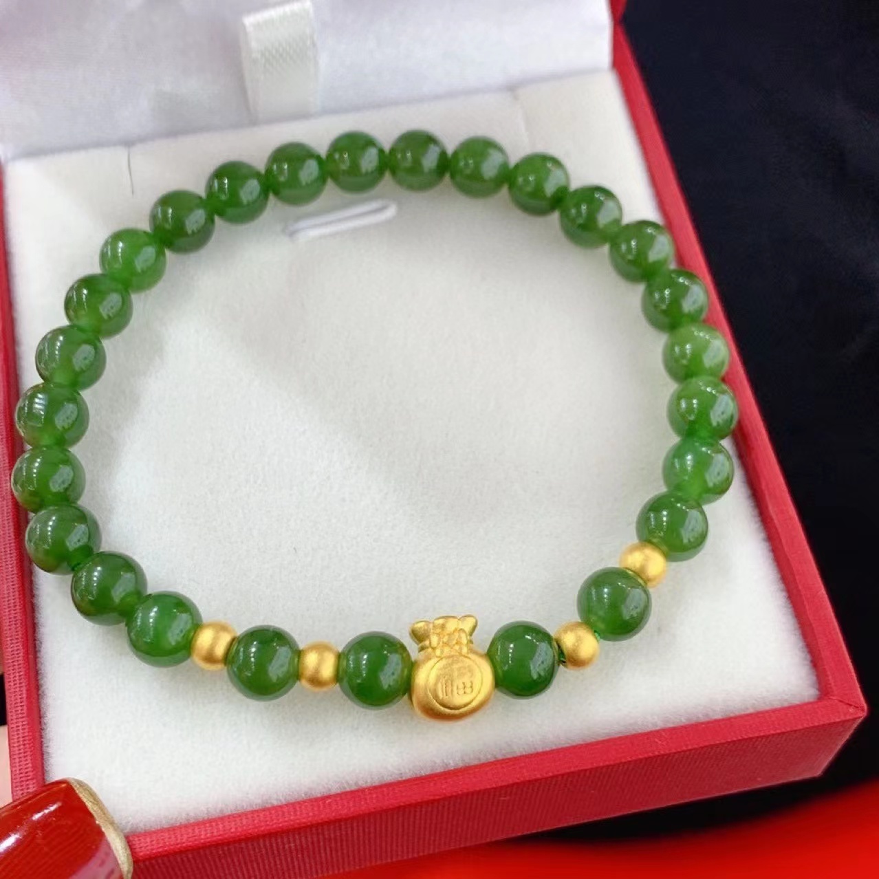 Gold 999 pure gold fortune bag hetian jasper transfer beads pure gold purse
