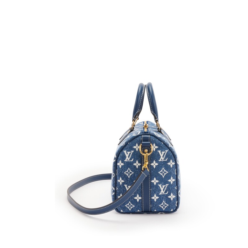 Blue Monogram Denim Jacquard Speedy 25 Bandoulière Gold Hardware, 2022