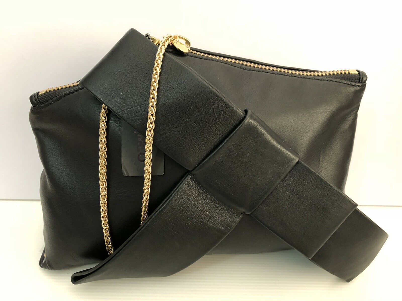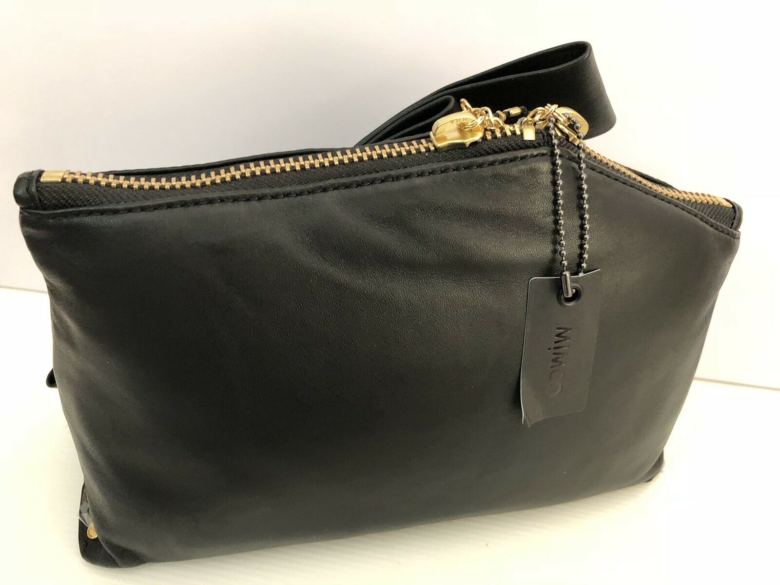Mimco Leather In The Fold Clutch Couch Bag Black Rosegold BNWT