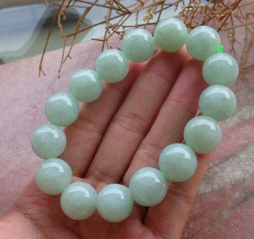 Certified Green 100% A JADE Jadeite Bead Bangle Bracelet 14mm