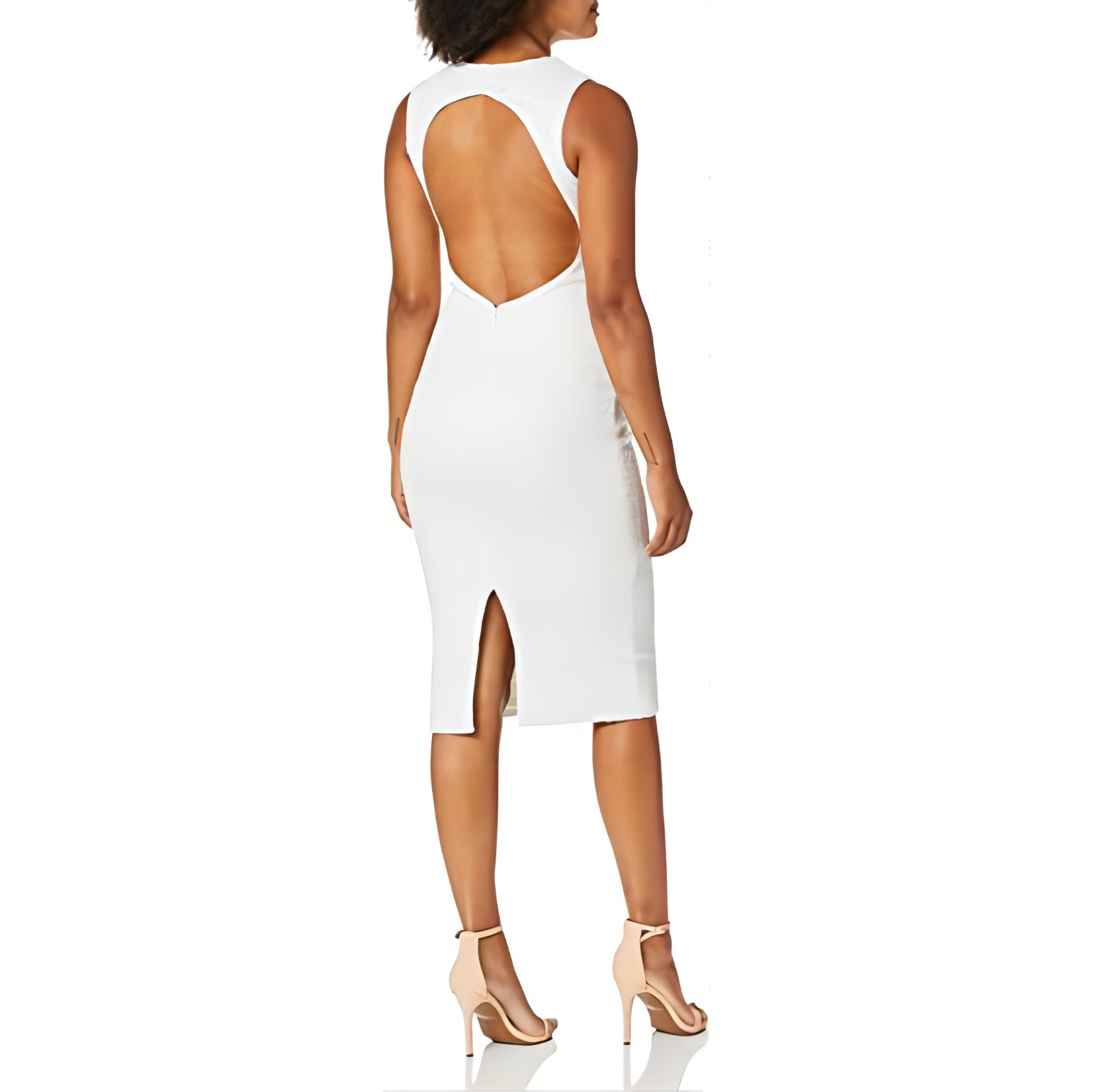 Dress the Population Women's Rani Plunging Sequin Fitted Midi Sleeveless Sheath Dress