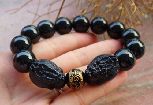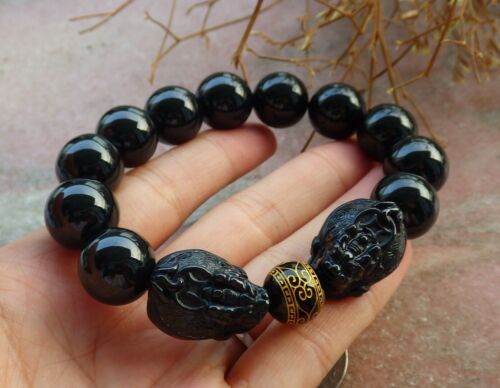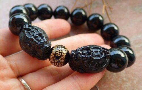 Certified Black Green A JADE Jadeite Dragon Turtle Bead Bracelet