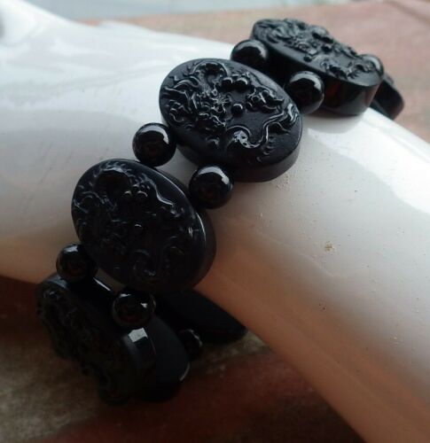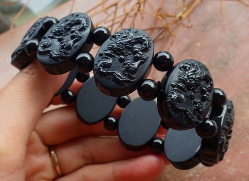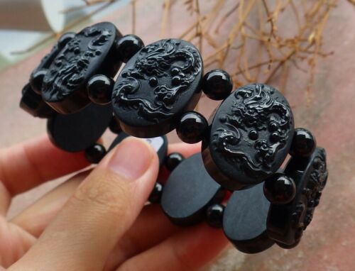 Dragon Bead Bangle Bracelet 墨翠龙手链