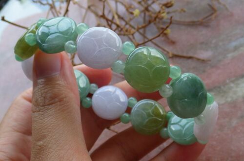 Certified 3 Color A JADE Jadeite Money Coin Bead Bangle Bracelet