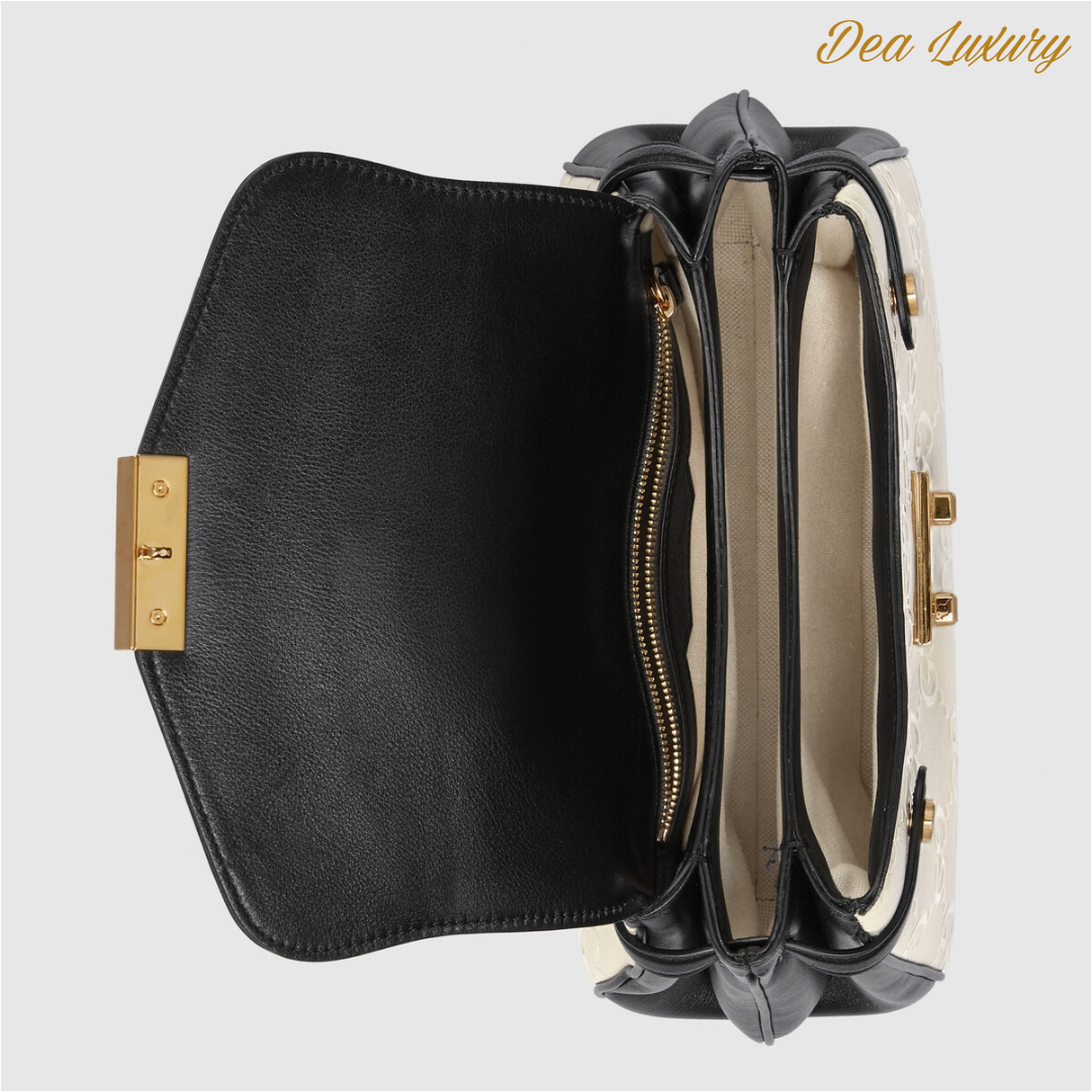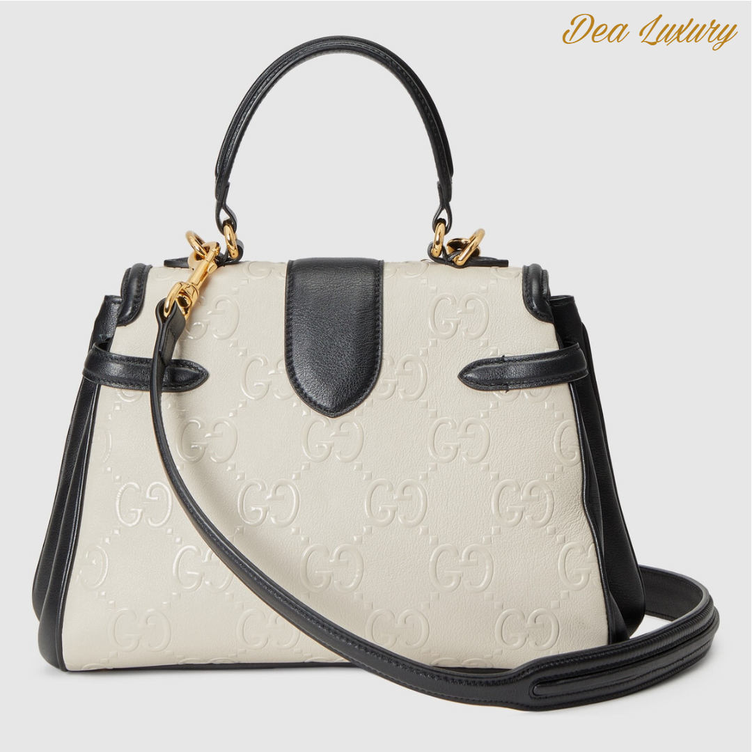 This white leather handbag draws inspiration from the classic Gucci elements of the last century, renovating the brand's meaningful style and design elements.
