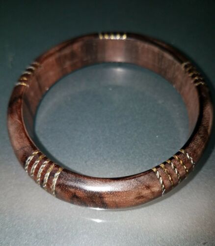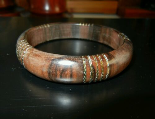 Antique Chenxiang Agarwood Bracelet Bangle Inlaid Golden Jewelry