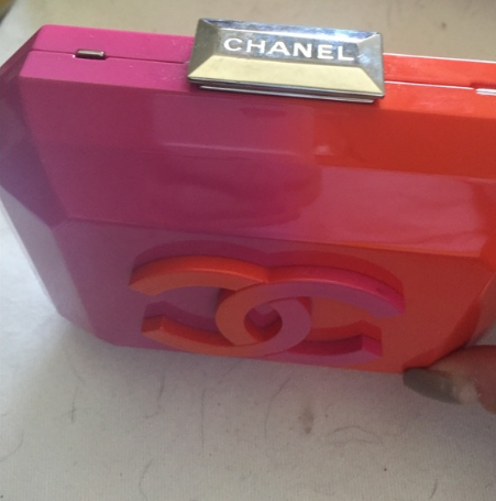 Chanel pink and orange boy brick clutch