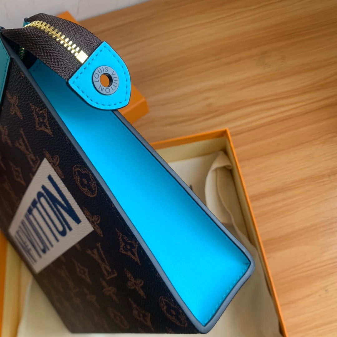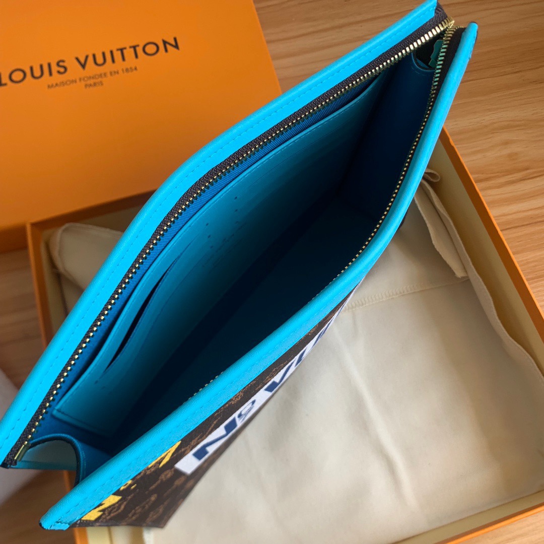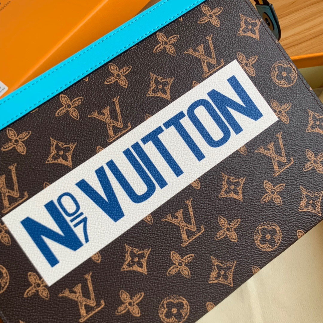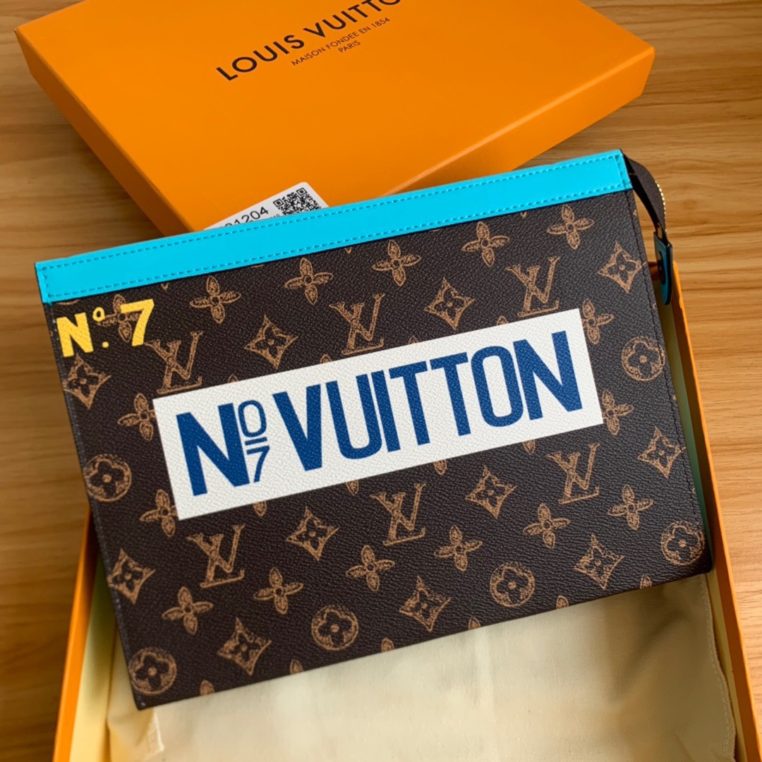 This pochette voyage clutch bag meets the theme elements of Louis Vuitton seal, depicts the wild animals charging scene composed of passport seal patterns on classic damier graphite canvas, and pays tribute to the spirit of free travel. Exquisite design makes a good choice for collection. 27×21×3cm in size
