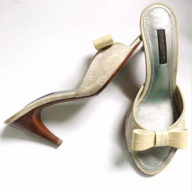 Louis Vuitton Mini Lin Bow Mules LV Sandals Logo Heels Size 36