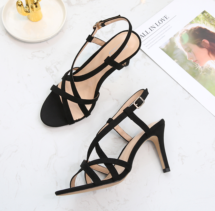 European and American fashion suede high heel heel sandals women's hollow back half with versatile shoes 8cm