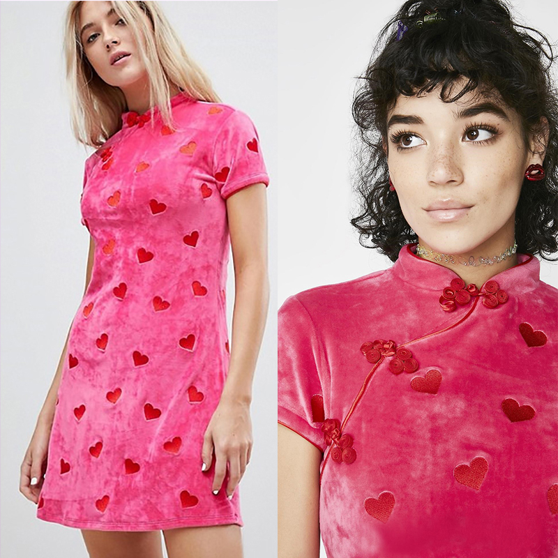 Focus on European and American stars with the same new high-end fashion retro embroidered red velvet cheongsam slim dress