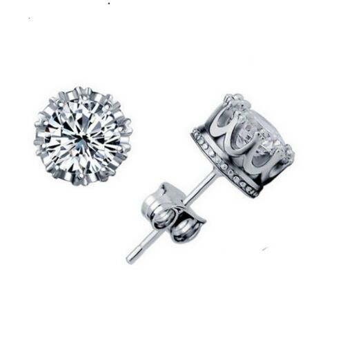 New 925 Silver Filled Crystal 10mm Crown Style Fashion Stud Earrings Stunning