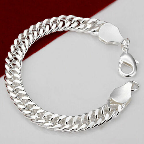 925 Sterling Silver Filled Solid Classic 10MM Curb Chain Bracelet Bangle Unisex