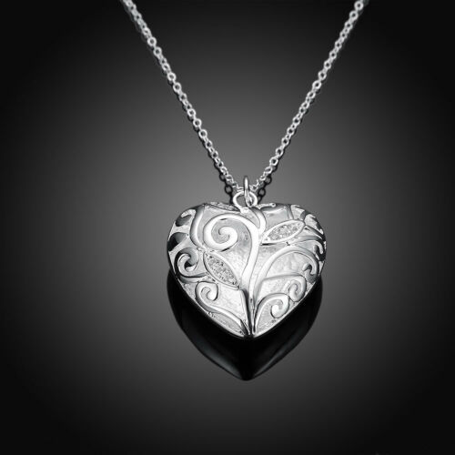 New 925 Sterling Silver Filled Hollow Heart Locket Charm Pendant Necklace Chain
