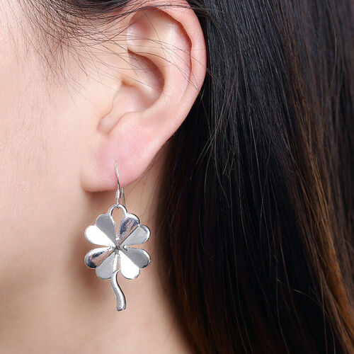 New 925 Sterling Silver Filled Women's Clover Lucky Flower Drop Dangle Earrings