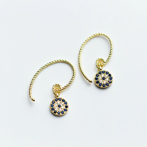 New 925 Sterling Silver Sapphire Evil Eye Drop Protection Dangle Stud Earrings