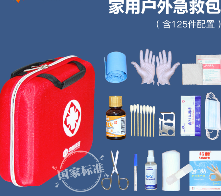 Outdoor vehicle medical first aid kit, a complete set of national standard portable family vehicle e