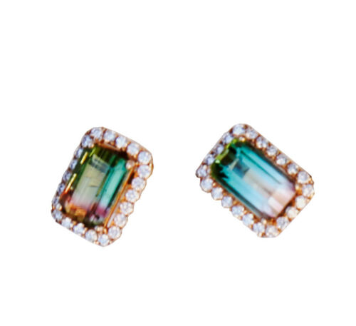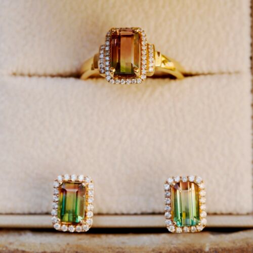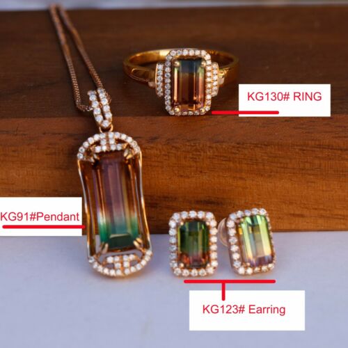 Natural Watermelon Tourmaline diamond 18K Rose Gold Pendant Ring Earring set