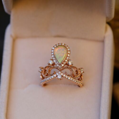 Natural Australia Solid opal w/0.548cts diamond 18K gold Crown ring 24.4cts #N
