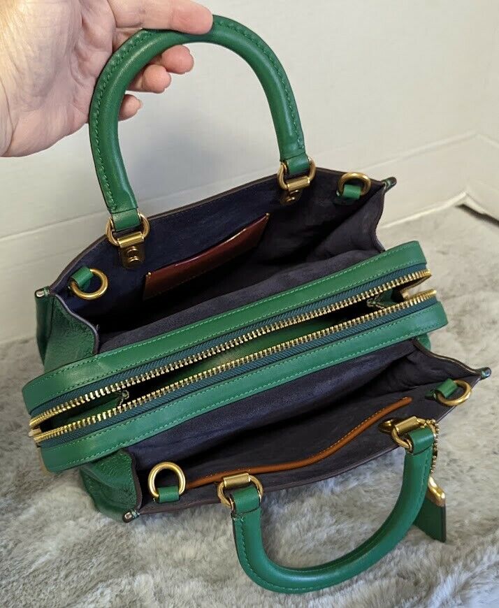Coach Rogue 25 Bag Green/ Brass Glovetanned Leather Shoulder Handbag C3877